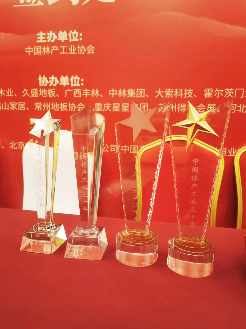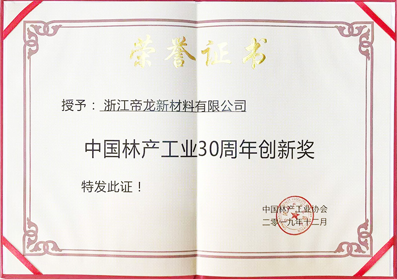 為了表彰帝龍新材對(duì)家居用品行業(yè)帶來的貢獻(xiàn)以及節(jié)約寶貴的森林資源。中國(guó)林產(chǎn)行業(yè)協(xié)會(huì)為帝龍頒發(fā)了四項(xiàng)榮譽(yù)稱號(hào)。