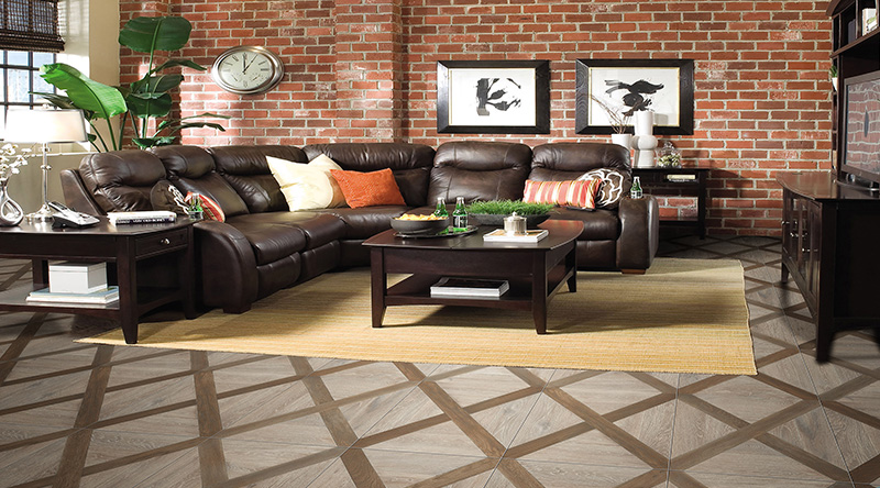 設計理念:?將浪漫主義色彩、藝術線條及空間層次感發揮到了極致,深、淺相間的拼花地板,對比強烈的木質色彩,拼貼效果如棋盤一樣,讓空間頓時充滿著戲劇意味,對于個性、藝術范兒的都市貴族來說可以大膽嘗試。